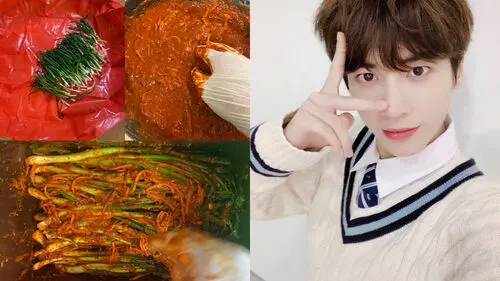 The photos showed TAEHYUN making kimchi from scratch all by himself.