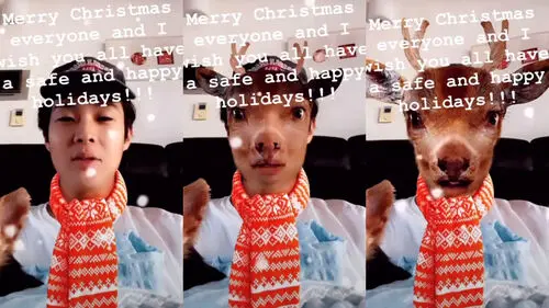 He used a special Christmas camera filter that put a cute scarf on him as well as made it snow over him.