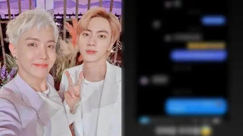 Over the screenshots, J-HOPE wrote, "My hyung is so cute."