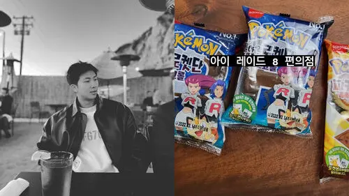 First, RM shared a photo of himself holding a Team Rocket Chocolate Roll with a writing, "Please sell more of these." and a crying emoji.