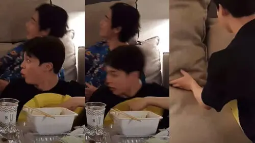 After discovering this, JUNGKOOK's eyes shook as he did not realize this when he was on live, and JIMIN playfully scolded him for not being careful.