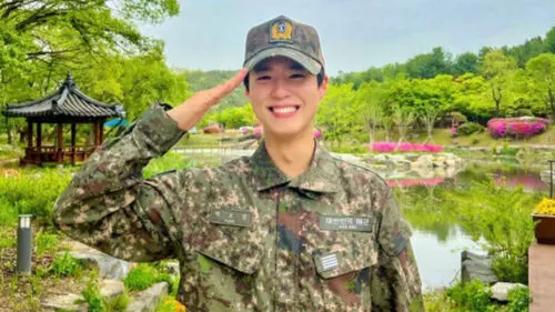 Salute! Reporting. South Korea's Navy Sergeant Park Bo Gum has received an order to discharge from April 30, 2022, onwards.