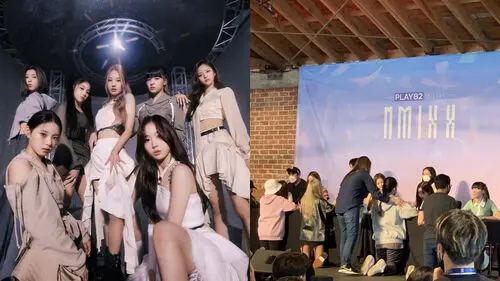 The photos showed NMIXX meeting NSWER and signing an autograph to them at an outdoor area.