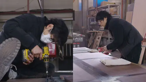 The videos showed all steps of Gang Dong Won making a wooden table for himself.