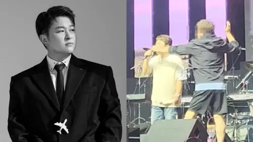 As the singer started to sing his song 'Don't Forget Me', a man was seen slowly walking towards him from behind.