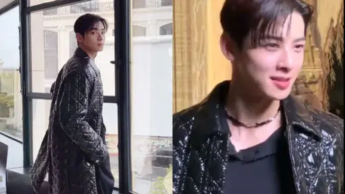 On this day, Cha Eun-woo matched everything in black from Dior, looking more stylish and chicer than ever.