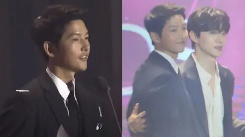 After Song Joong Ki received the award, he said through the microphone, "Thank you for inviting me to the awards ceremony today. I thought I wouldn't be that nervous, but I felt really nervous from the moment I sat on my seat."