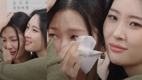 With watery eyes, she went on, "I actually felt really grateful for that. I'm usually uncomfortable with sunbaes, but I felt comfortable with you even on the day when we first met. You are always like, 'My SEULGI! SEULGI the cutie pie!' So, I was able to open my heart to you quicker than any other sunbaes. I felt so comfortable with you that I messaged you first and stuff. Thank you for that as well."