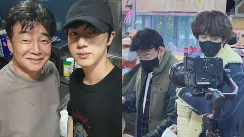 With many cameras surrounding them, fans speculated that JIN will be making a special guest appearance on Paik Jong-won's YouTube channel 'Paik's Cuisine'.
