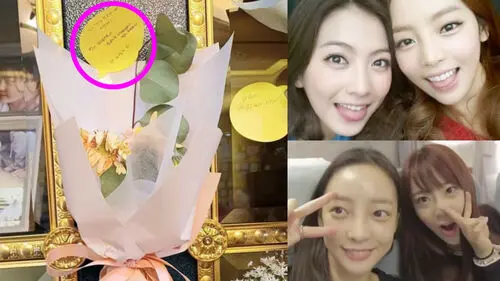 In the photo, there was the same bouquet of yellow flowers at Koo Ha Ra's ossuary with a memo on top.