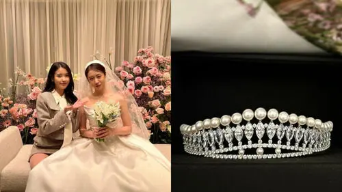 In the post, there was a photo of IU and Ji Yeon taken right before the wedding ceremony, and additional photo was of a beautiful pearl tiara.