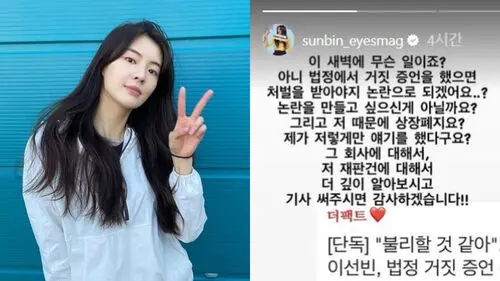 On January 4, Lee Sunbin took to her personal Instagram and shared a screenshot of an article titled, 'Lee Sunbin, Controversy Over False Testimony in Court'.
