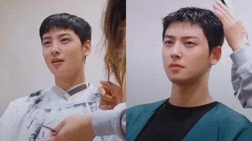 As the hair stylist cut his hair short, she said, "Oh, you look cute.", which Cha Eun-woo responded, "I can't look cute. I'm part of the navy!"