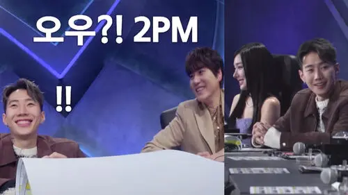 When KyuHyun heard their name, he immediately looked at Jay Park and playfully went, "Oh? 2PM?!"