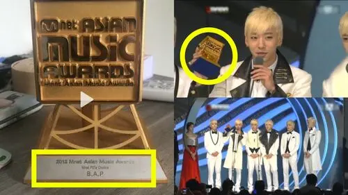 The video showed a trophy titled, '2012 Mnet Asian Music Awards―Mnet PD's Choice', that was awarded to B.A.P.