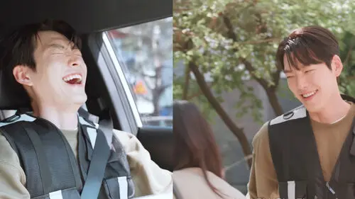 Kim Woo Bin laughed so hard that he slumped into the driving wheel.