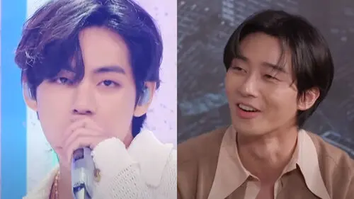 Then, she showed a video of the Park Seo Jun and V posing for press photos before attending one past event, and Park Seo Jun instantly turning unhappy after witnessing V tilting his head to the side and blowing a kiss with his hand toward the cameras.