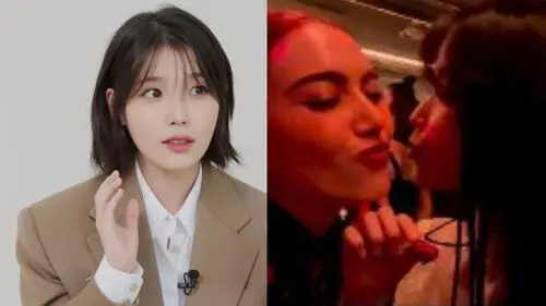 The video shows her and IU at the show's after-party, where IU gave Davika Hoorne a peck on the cheek after Davika Hoorne pursed her lips and leaned her face towards IU's.