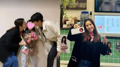 "This is incredibly touching. I've heard you've spent a lot of time on this, and I was so pleasantly surprised. Thanks to you, I was able to get through today's performance. All the cast and crew loved the coffee and the cups of fruit. Thank you from the bottom of my heart.", Han Hye-jin wrote on her Instagram beside pictures of herself beaming in front of the coffee van.