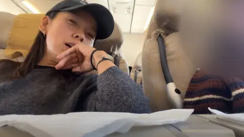 On her way to Jeju Island, she happened to sit next to Lee Hyo-ri, heading back to her Jeju Island home after her work in Seoul, on the plane.