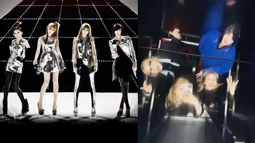 The first photo showed DARA, CL, Park Bom and Minzy in the elevator; they were all looking up where there was a big mirror.