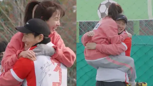 The actress was so happy that she ran towards Kim Jong-kook; as Yang Sechan yelled, "Go give the coach a hug!", the actress jumped into the coach's arms, enveloping him in a tight embrace, which made him giggle.