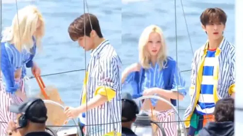In the footage, MARK was posing for a photo shoot on a boat.