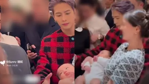 Amid the commotion, JACKSON noticed a fan next to him, who was holding a baby.