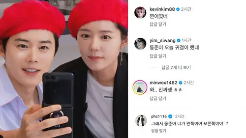On November 27, Kim Dong Jun posted photos of him and Han Ga In sitting side by side on his Instagram.