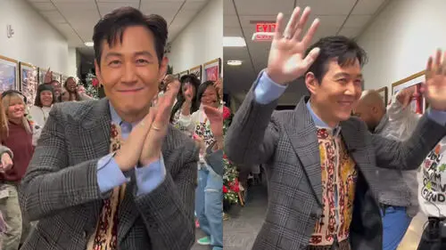 In the video, staff lined up on both sides of the hallway greeted Lee Jung Jae in Korean, repeatedly shouting, "Annyeonghaseyo (hello), Lee Jung Jae!" and clapping.