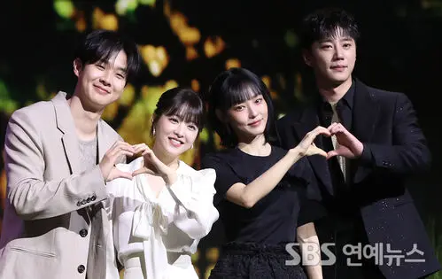 Actors Choi Woo-shik (from left), Park Bo-young, Jeon So-ni, and Lee Joon-young attended the press conference for the Netflix series 'Melomovie' held on the morning of the 12th at the JW Marriott Dongdaemun Square in Seoul, where they posed for photos.
