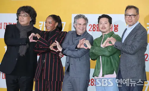[SBS Entertainment News | Baik Seung-Chul] Director Bong Joon-ho (from left), Naomi Ackie, Mark Ruffalo, Steven Yeun, and producer Choi Doo-ho attended the press conference for the film 'Mickey 17' held on the morning of February 20 at Megabox COEX in Gangnam, Seoul, where they posed for photos.