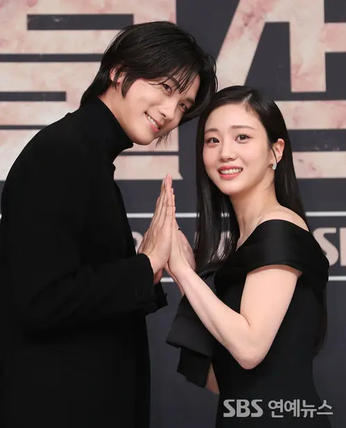 [SBS Entertainment News | Baik Seung-Chul] Actors Park Hyung-sik (left) and Hong Hwa-yeon attended the press conference for the new SBS Friday-Saturday drama 'Buried Hearts' held at SBS in Mokdong, Yangcheon-gu, Seoul, on the afternoon of the 21st, where they posed for photos.