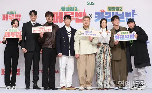 [SBS Entertainment News | Baik Seung-Chul] PD Han Bi-In (from left), Chef Choi Hyun-Seok, actor Choi Daniel, Lee Joon, Chef Yoon Nam-No, actress Kim Ok-Bin, Ryu Soo-Young, and PD Ryu Ji-Hwan attended the press conference for the SBS variety show 'Jungle Bob 2 - Peru Bob, Caribbean Bob' held on the afternoon of the 27th at SBS in Mokdong, Yangcheon-gu, Seoul, where they posed for photos.