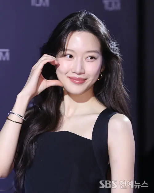 Actress Moon Ga-young attended the TUMI brand photo wall event held in Itaewon, Yongsan-gu, Seoul, on the morning of the 19th, striking a pose for the cameras.