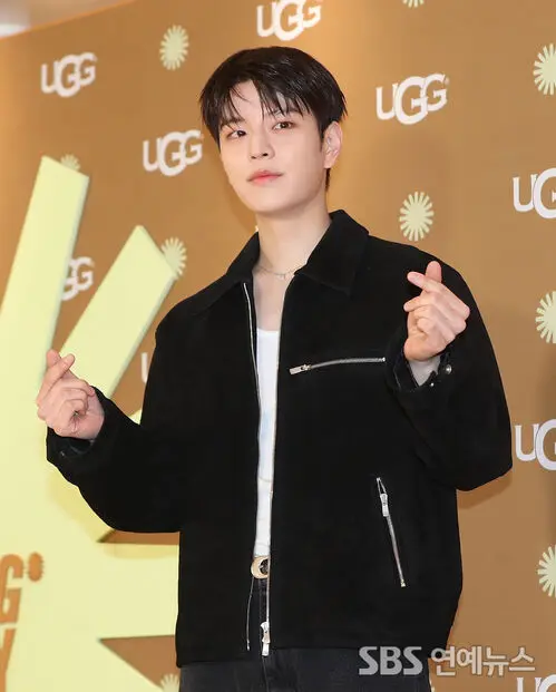 Seungmin from the group Stray Kids attended a brand photo wall event at the UGG Dosan store in Gangnam, Seoul, on the afternoon of the 20th, striking a pose for the cameras.