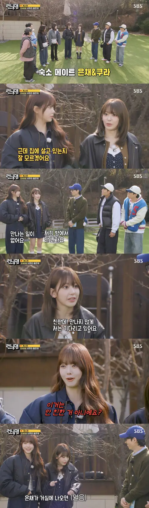 The 'Running Man' members then asked if they were not close, to which SAKURA replied, "We are close, but I wait for the right moment. If Eunchae comes into the living room, I freeze in my room. Once she leaves, I come out," humorously comparing her behavior to a scene from a suspense movie, surprising everyone.