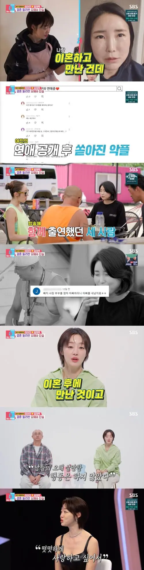 Choi Yeo-jin also expressed her apologies to Kim Jae-wook's ex-wife, saying, "I expected these rumors might come up. If I had approached him with any ulterior motives, I wouldn't have gone on a show and announced our relationship. I thought I could handle it, but hearing it is still upsetting. I'm sorry to both of them. I can't change people's minds, but I hope they can be protected as they are not celebrities."