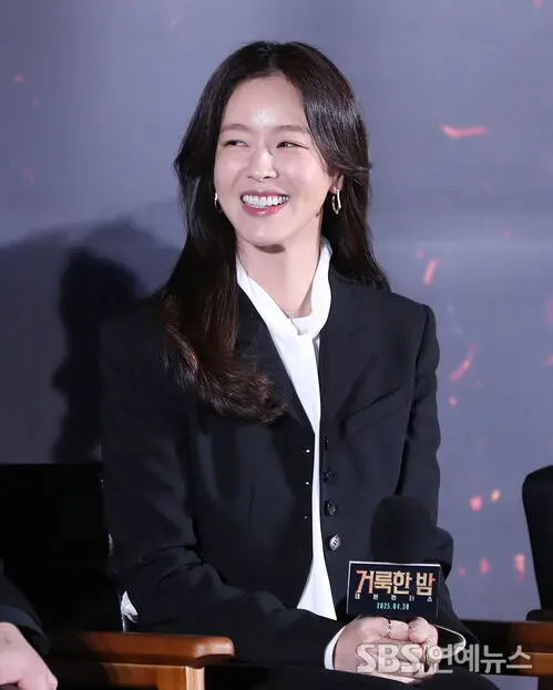 Actress Gyeong Su-Jin attended the production briefing session for the movie 'Holy Night: Demon Hunters' held at Lotte Cinema in Gwangjin-gu, Seoul, on the morning of April 2nd. She engaged in a lively discussion about her role.