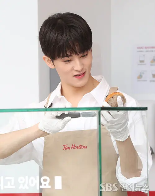 Mark from the group NCT attended the grand opening event of a Tim Hortons store at Lotte World Mall in Songpa-gu, Seoul, on the afternoon of the 9th, where he posed for photos.
