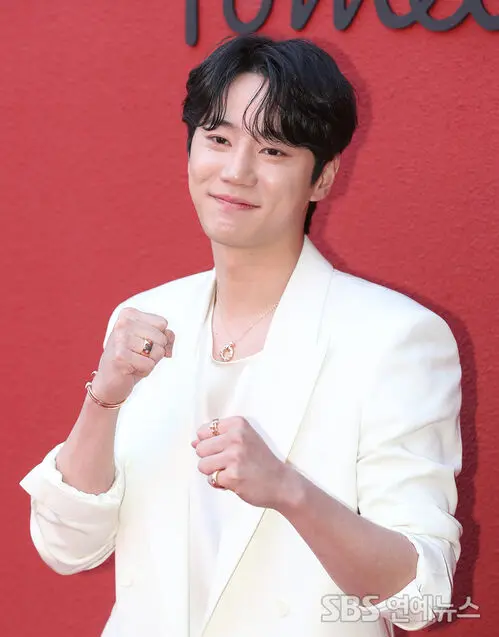 Actor Lee Jun-young was spotted striking a pose at a jewelry brand photowall event held in Seongsu-dong, Seongdong-gu, Seoul, on the afternoon of the 30th.