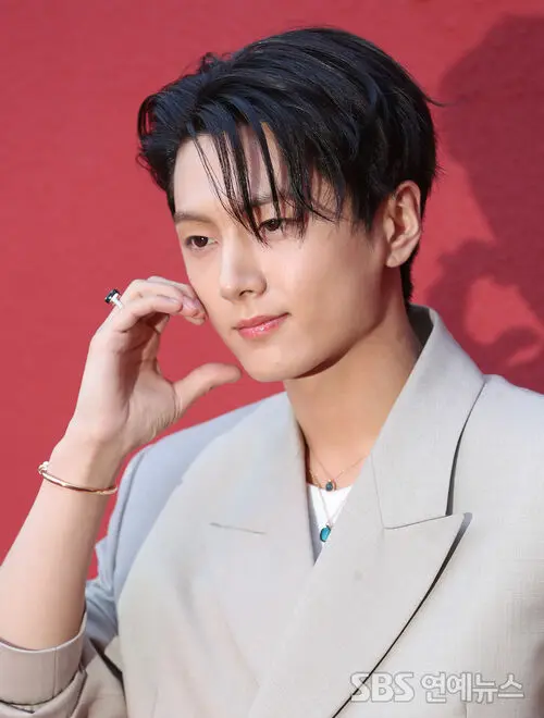 JAY from the group ENHYPEN was spotted striking a pose at a jewelry brand's photo wall event held in Seongsu-dong, Seongdong-gu, Seoul, on the afternoon of the 30th.