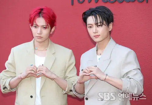 ENHYPEN members HEESEUNG (left) and JAY were spotted striking poses at a jewelry brand photowall event held in Seongsu-dong, Seongdong-gu, Seoul, on the afternoon of April 30th.