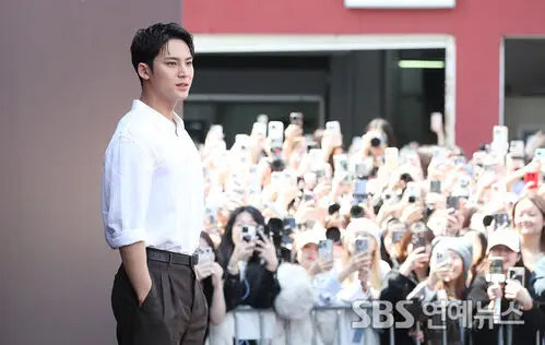 SEVENTEEN MINGYU was spotted striking a pose at a chocolate brand's photo event held in Seongsu-dong, Seongdong-gu, Seoul, on the morning of May 2nd.