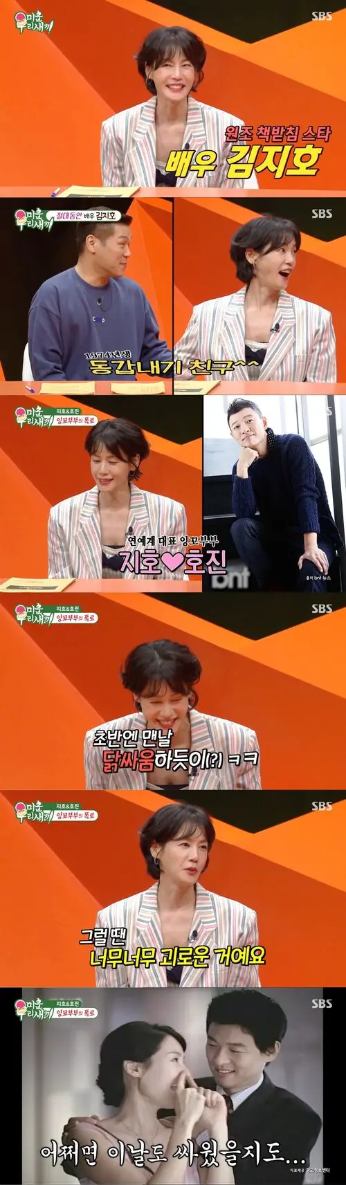 During the broadcast, Kim Ji-ho revealed she shares the same birth year, 1974, with Seo Jang-hoon, surprising everyone. Known for her youthful appearance, Kim Ji-ho, alongside actor Kim Ho-jin, has been considered one of the entertainment industry's model couples.