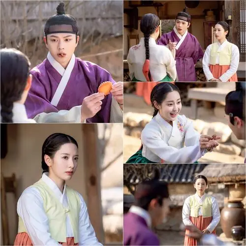 The released stills show Kang Cheol and Yeori caught in a tense atmosphere due to the unexpected visit of Inseon (played by Shin Seul-gi). Kang Cheol is seen enjoying a variety of sweet treats and snacks brought by Inseon as gifts. His fascination with the array of snacks, different from his favorite pumpkin candy, brings laughter. However, his expression suggests he's sneakily checking Yeori's reaction while indulging in his beloved snacks.