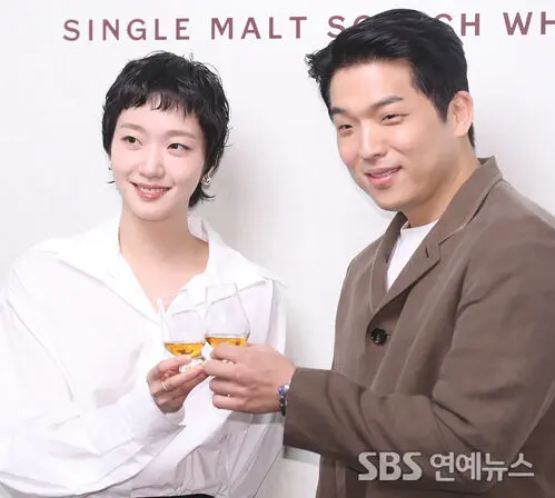 Actors Kim Goeun and Chef Anh Sung-jae were spotted striking a pose at a whiskey brand photo wall event held in Seongsu-dong, Seongdong-gu, Seoul, on the morning of the 26th.