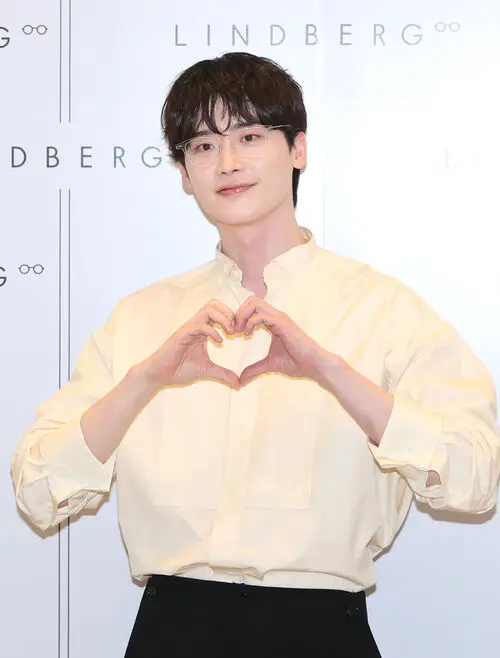 Actor Lee Jong-suk was spotted this morning at the grand reopening event of the Lindberg store located in the main Shinsegae Department Store in Jung District, Seoul, striking a pose.
