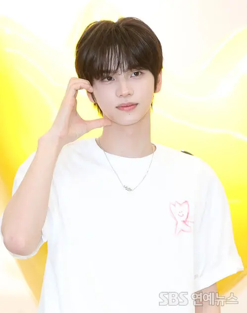 SHINYU of the group TWS attended the Wacky WiLLy brand photowall event held in Myeong-dong, central Seoul, on the morning of June 2nd, striking poses.