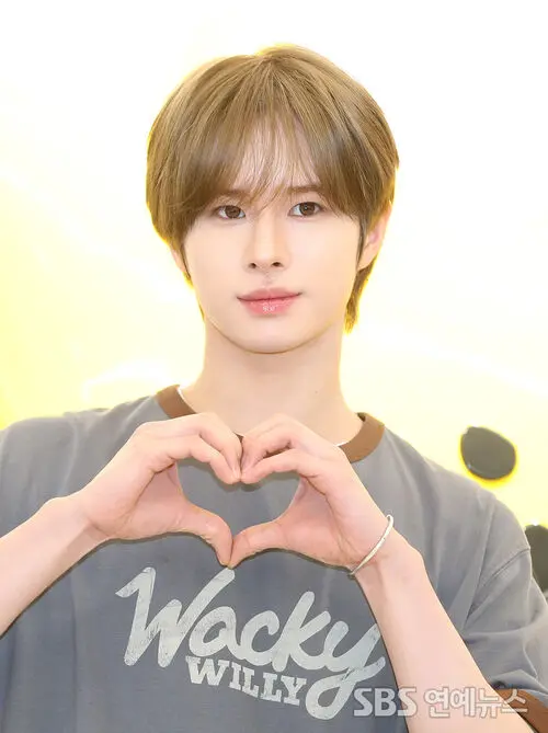 KYUNGMIN of the group TWS was spotted striking a pose at the Wacky WiLLy brand photowall event held in Myeong-dong, central Seoul, on the morning of June 2nd.
